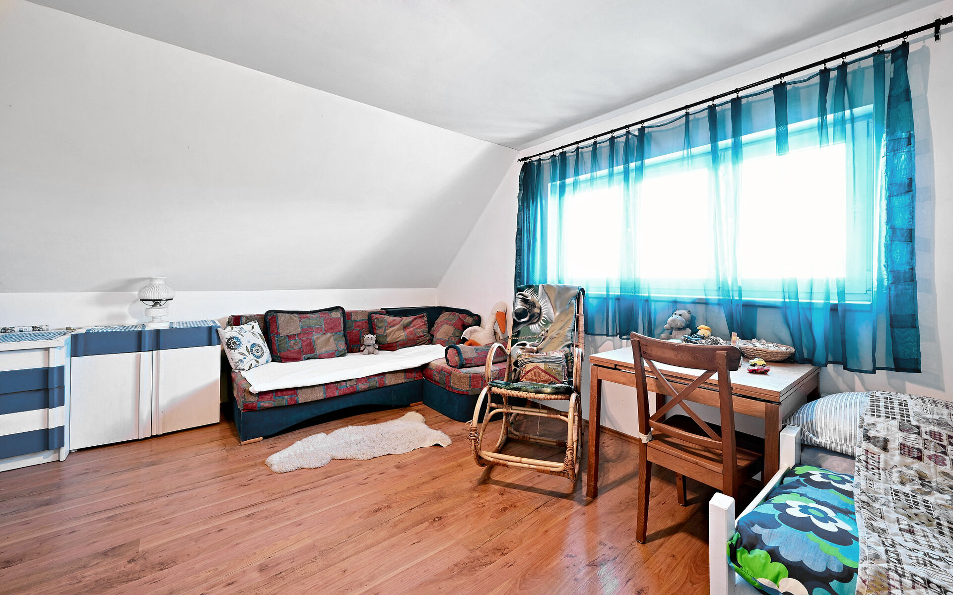 Dispozice zahrnuje čtyři pokoje, kuchyňský kout, koupelnu s prostorným sprchovým koutem a WC. Samozřejmostí je také sklep o velikosti 9 m², který je využíván jako dílna a také malý sklípek pod chodbou v přízemí. Další úložný prostor se nachází pod vstupní terasou a úložné možnosti nabízí také pochozí půda, která je nad celým druhým nadzemním podlažím. Dům je plně vybavený.